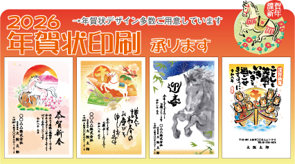 名刺・封筒・伝票・チラシ・ポスター・冊子・シール・はがき・年賀状・カード・DM宛名印刷等